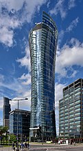 Warsaw is served by three international airports, the busiest being Warsaw Chopin, Warsaw Radom and the smaller Warsaw Modlin intended for low-cost carriers. Major public transport services operating in the city include the Warsaw Metro, buses, commuter rail service and an extensive tram network. The city is a significant centre of research and development, business process outsourcing, and information technology outsourcing. The Warsaw Stock Exchange is the largest and most important in Central and Eastern Europe.[13][14] Frontex, the European Union agency for external border security, and ODIHR, one of the principal institutions of the Organization for Security and Co-operation in Europe, have their headquarters in Warsaw. As of 2022, Warsaw has one of the highest number of skyscrapers in Europe while Varso Place is the tallest building in the European Union.