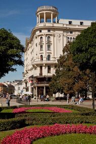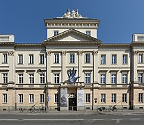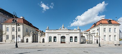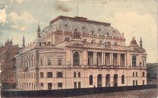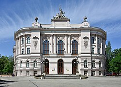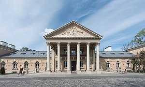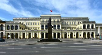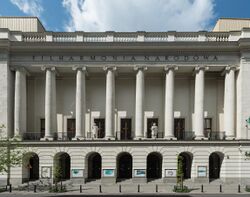 The main building housed the Great Theatre from 1833 to 1834, the Rozmaitości Theatre from 1836 to 1924 and then the National Theatre, the Reduta Theatre from 1919 to 1924, and from 1928 to 1939 – the Nowy Theatre, which staged productions of contemporary poetical drama, including those directed by Leon Schiller.[213]