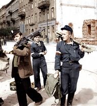 By July 1944, the Red Army was deep into Polish territory and pursuing the Nazis toward Warsaw.[57] The Polish government-in-exile in London gave orders to the underground Home Army (AK) to try to seize control of Warsaw before the Red Army arrived. Thus, on 1 August 1944, as the Red Army was nearing the city, the Warsaw uprising began.[57] The armed struggle, planned to last 48 hours, was partially successful, however, it went on for 63 days. Eventually, the Home Army fighters and civilians assisting them were forced to capitulate.[57] They were transported to PoW camps in Germany, while the entire civilian population was expelled.[57] Polish civilian deaths are estimated at between 150,000 and 200,000.[58]
