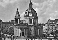 Like London, Warsaw's population was subjected to income segmentation. Gentrification of inner suburbs forced poorer residents to move across the river into Praga or Powiśle and Solec districts, similar to the East End of London and London Docklands.[45] Poorer religious and ethnic minorities, such as the Jews, settled in the crowded parts of northern Warsaw, in Muranów.[46] The Imperial Census of 1897 recorded 626,000 people living in Warsaw, making it the third-largest city of the Empire after St. Petersburg and Moscow as well as the largest city in the region.[47] Grand architectural complexes and structures were also erected in the city centre, including the Warsaw Philharmonic, the Church of the Holiest Saviour and tenements along Marszałkowska Street.