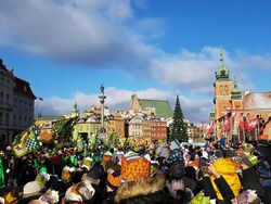 Several commemorative events take place every year, notably the Orange Warsaw Festival featuring music concerts. One of the more popular events is the procession of the Three Wise Men (in Polish known as the Three Kings) on Epiphany, shortly after the New Year. Paper crowns are usually worn by spectators throughout the day. The event, which runs along the Royal Route, is attended by Warsaw's highest officials and by the Polish president who resides nearby.[236][237]