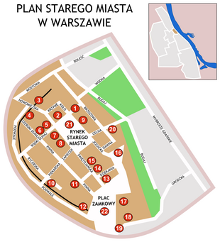 The Downtown district Royal Castle and Sigismund's Column Nicolaus Copernicus Monument Łazienki Park Main Market Square Royal Route Warsaw Old Town Wilanów Palace | |