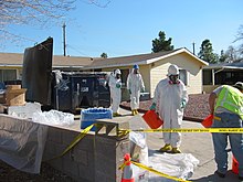 Mercury thermometers and mercury light bulbs are not as common as they used to be, and the amount of mercury they contain is unlikely to be a health concern if handled carefully. However, broken items still require careful cleanup, as mercury can be hard to collect and it is easy to accidentally create a much larger exposure problem.[50] If available, powdered sulfur may be applied to the spill, in order to create a solid compound that is more easily removed from surfaces than liquid mercury.[51]