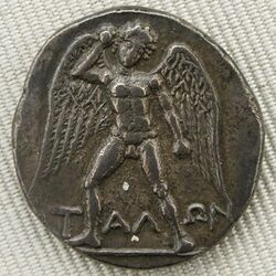 Silver didrachma from Crete depicting Talos, a mythical intelligent automaton (c. 300 BC)