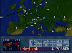 The game includes numerous historical events that can help or hinder airline performance. Four different eras of play are available for the player to choose. They include 1955–1975 (which depicts the dawn of jet airplanes), 1970–1990 (which depicts a period of instability, oil crises, and the end of the Cold War), 1985–2005 (which depicts the present day of economic prosperity and relative stable peace), and 2000–2020 (which depicts the replacement of jet planes with supersonic airplanes, the European Union extending to Russia, and countries trying to get airlines to fund alternative fuel research). This futuristic era was chosen by SG and Koei to be illustrated by San Francisco illustrator Marc Ericksen for the packaging art, showing two executives conferring over a holographic aircraft design in a futuristic airline terminal.