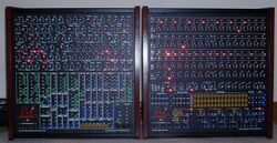 The first modular synthesizer was developed by German engineer Harald Bode in the late 1950s.[1] The 1960s saw the introduction of the Moog synthesizer and the Buchla Modular Electronic Music System, created around the same period.[2] The Moog was composed of separate modules which created and shaped sounds, such as envelopes, noise generators, filters, and sequencers,[3][4] connected by patch cords.[5]