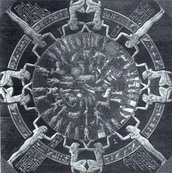 The zodiac was in use by the Roman era, based on concepts inherited by Hellenistic astronomy from Babylonian astronomy of the Chaldean period (mid-1st millennium BC), which, in turn, derived from an earlier system of lists of stars along the ecliptic.[8] The construction of the zodiac is described in Ptolemy's comprehensive 2nd century AD work, the Almagest.[9]