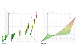 Design of experiments with full factorial design (left), response surface with second-degree polynomial (right)