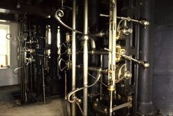 The cataract's actuating rod also had a screw adjuster, which acted to vary the water injection time (Newcomen) or the phasing between the inlet and exhaust valves (Cornish).[13] This could be used to give a longer and more effective condensation time, if the condensing water supply was warm, as in the Summer. This adjustment appears to have been poorly understood though, and little used by the engine drivers.[10]