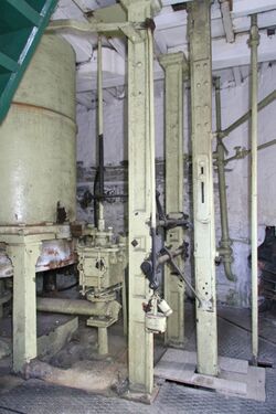 The typical installation of a house-built beam engine spanned four floors. The cylinder and the engine driver's usual working position were located in the 'bottom chamber', approximately at ground level. Above this were the 'middle chamber', with the cylinder top cover and 'top nozzle' (the upper valve chest), and above that the 'top chamber' or beam chamber.[3] The cataracts were located in the lowest part of the engine house, in a chamber below the bottom chamber, along with the exhaust pipe. This space was awkward to access and not visited in normal operation.