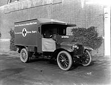 During World War One, further advances were made in providing care before and during transport – traction splints were introduced during World War I, and were found to have a positive effect on the morbidity and mortality of patients with leg fractures.[20] Two-way radios became available shortly after World War I, enabling for more efficient radio dispatch of ambulances in some areas. Prior to World War II, there were some areas where a modern ambulance carried advanced medical equipment, was staffed by a physician, and was dispatched by radio. In many locations, however, ambulances were hearses – the only available vehicle that could carry a recumbent patient – and were thus frequently run by funeral homes. These vehicles, which could serve either purpose, were known as combination cars.[21][22]
