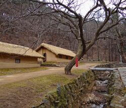 Buildings at the Paeksong Revolutionary Site near Pyongsong, to which many students from Kim Il-sung University were moved during the Korean War, for reasons of safety.