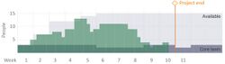 The chart shows the number of people involved in a project and its change with time. This is an example of Resource leveling in project management simulator SimulTrain. [2]