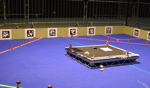 This task involved moving cardboard boxes (tokens) around the arena in order to capture zones. A central "volcano" was placed at the centre of the arena to act as an obstacle; zones on the volcano were worth more points.[21]