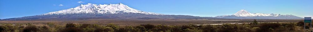 The plateau has a mild climate although the temperature regularly falls below freezing in winter and snow can fall between March and October. Of all North Island regions, the Volcanic Plateau is closest to having a continental climate.[7] The period of maximum snow is July to September. Sudden blizzard conditions can be experienced on the volcanoes in winter. Such conditions have killed climbers as recently as 2019.[8] The Desert Road on State Highway 1 is often closed by snow in winter for brief periods.