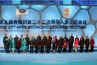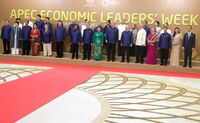 The heads of government of all APEC members except Taiwan (which is represented by a ministerial-level official under the name Chinese Taipei as economic leader)[12] attend an annual APEC Economic Leaders' Meeting. The location of the meeting rotates annually among the member economies, and a famous tradition, followed for most (but not all) summits, involves the attending leaders dressing in a national costume of the host country. APEC has three official observers: the Association of Southeast Asian Nations Secretariat, the Pacific Economic Cooperation Council and the Pacific Islands Forum Secretariat.[13] APEC's Host Economy of the Year is considered to be invited in the first place for geographical representation to attend G20 meetings following G20 guidelines.[14][15]
