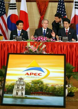 At the Leaders' Meeting held on 19 November 2006 in Hanoi, APEC leaders called for a new start to global free-trade negotiations while condemning terrorism and other threats to security. APEC also criticised North Korea for conducting a nuclear test and a missile test launch that year, urging the country to take "concrete and effective" steps toward nuclear disarmament. Concerns about nuclear proliferation in the region was discussed in addition to economic topics. The United States and Russia signed an agreement as part of Russia's bid to join the World Trade Organization.