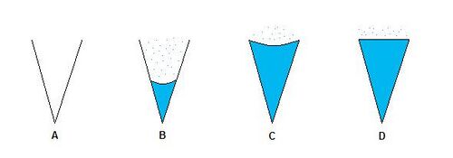 System D → Pv=Pmax<Psat, vapor pressure is increased to its maximum allowed value and the pore is filled completely