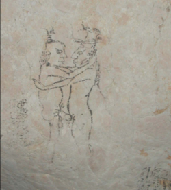 Among the Classic Period scenes found in a cave of Naj Tunich is a depiction of a naked, sexually excited male embracing a nude Maya nobleman,[4] possibly by way of initiation.
