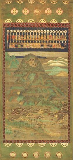 Around the Nara period, Yamanaka, who had never set foot in Japan since ancient times, began to become a training ground under the influence of various factors such as esoteric Buddhism, onmyodo, and Shinto worship.[40] By the end of the Heian period, such mountain ascetic practices were organized, and such mountains as Kinpusen, Kumano Sanzan, Three Mountains of Dewa, and Mount Togakushi, Kumano Sanzan, Three Mountains of Dewa, and Mount Togakushi are considered representative sacred mountains, and Shugendo was formed.[40] Later, Shugendo schools were established, including the Honzan school, which is affiliated with the Tendai sect, the Tōzan school, which is affiliated with the Shingon sect, the Haguro school, which is based in Dewa Sanzan, and the Hidehikozan school, which is based in Mount Hiko[40]
