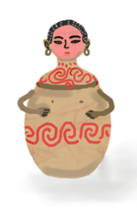 So far, there have been four classified kinds of cover and lid: (1) Anthropomorphic motif or head, (2) Trunconical with simple appliquéd design, (3) Simple ovaloid with four ear handles, and (4) Trunconical with adz shape and round spinning shape motif. While there are three types of heads: (1) Plain, (2) Perforated, and (3) Painted red and black from hematite and organic material. The black paint may indicate where the hair of the dead has once been.[1]