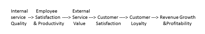 Heskett, Sasser and Schlensinger (1997) proposed the service-profit chain as a way to design service processes. The service-profit chain links various aspects and tasks required to deliver superior service and profits. It starts with a high level of internal quality leading to employee satisfaction and productivity to deliver superior external customer service leading to customer satisfaction, customer loyalty and finally high revenues and profits.[19]