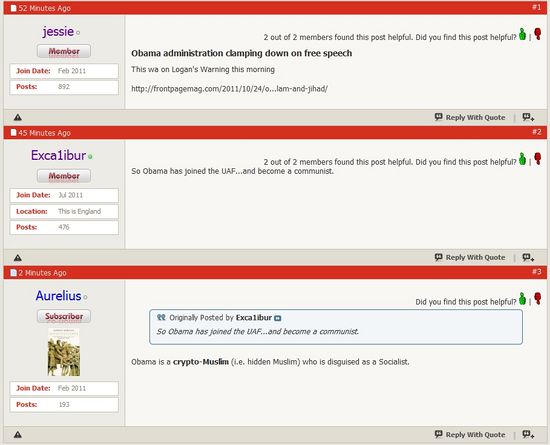 Bigoted comments and endorsements of violence are often found to have been posted on Facebook groups connected with the EDL. When confronted with this, Lennon dismissed critics who "keep reverting back to Facebook, where anyone can go under any name and put anything. That is no evidence against our organisation in any way; you will not find them sort of things on our website".[55] Some members of the official EDL forum have suggested that the group leave Facebook for these reasons.[56]