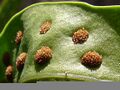 Sword fern. The indusia have opened, revealing the sporangia. Scale bar, 1 mm