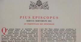 Quo primum of Pope Pius V in a Roman Missal. Below the name of the Pope
