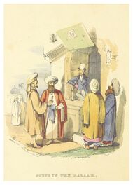 Damascus has a busy nightlife. Coffeehouses offer Arabic coffee, tea and nargileh (water pipes). Card games, tables (backgammon variants), and chess are activities frequented in cafés.[163] These coffeehouses had an international reputation in the past, as indicated by Letitia Elizabeth Landon's poetical illustration, Cafes in Damascus, to a picture by William Henry Bartlett in Fisher's Drawing Room Scrap Book, 1837.[164] Current movies can be seen at Cinema City which was previously known as Cinema Dimashq.