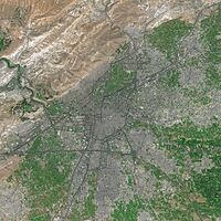 The modern city has an area of 105 km2 (41 sq mi), out of which 77 km2 (30 sq mi) is urban, while Jabal Qasioun occupies the rest.[25]