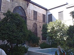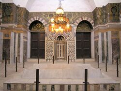 Shias, Fatemids, and Dawoodi Bohras believe that after the battle of Karbala (680 AD), in Iraq, the Umayyad Caliph Yezid brought Imam Husain's head to Damascus, where it was first kept in the courtyard of Yezid Mahal, now part of Umayyad Mosque complex. All other remaining members of Imam Husain's family (left alive after Karbala) along with the heads of all other companions, who were killed at Karbala, were also brought to Damascus. These members were kept as prisoners on the outskirts of the city (near Bab al-Saghir), where the other heads were kept at the same location, now called Ru'ûs ash-Shuhadâ-e-Karbala or ganj-e-sarha-e-shuhada-e-Karbala.[142] There is a qibla (place of worship) marked at the place, where devotees say Imam Ali-Zain-ul-Abedin used to pray while in captivity. The Harat Al Yehud[143] or Jewish Quarter is a recently restored historical tourist destination popular among Europeans before the outbreak of civil war.[144] Vacationers can enjoy the neighborhood and scenic ancient homes abandoned by the completely departed Syrian Jewish community.[145]
