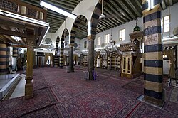 In early 1516, the Ottoman Empire, wary of the danger of an alliance between the Mamluks and the Persian Safavids, started a campaign of conquest against the Mamluk sultanate. On 21 September, the Mamluk governor of Damascus fled the city, and on 2 October the khutba in the Umayyad mosque was pronounced in the name of Selim I. The day after, the victorious sultan entered the city, staying for three months. On 15 December, he left Damascus by Bab al-Jabiya, intent on the conquest of Egypt. Little appeared to have changed in the city: one army had simply replaced another. However, on his return in October 1517, the sultan ordered the construction of a mosque, tekkiye and mausoleum at the shrine of Shaikh Muhi al-Din ibn Arabi in al-Salihiyah. This was to be the first of Damascus's great Ottoman monuments. During this time, according to an Ottoman census, Damascus had 10,423 households.[96] The Ottomans remained for the next 400 years, except for a brief occupation by Ibrahim Pasha of Egypt from 1832 to 1840. Because of its importance as the point of departure for one of the two great Hajj caravans to Mecca, Damascus was treated with more attention by the Porte than its size might have warranted—for most of this period, Aleppo was more populous and commercially more important. In 1559 the western building of Sulaymaniyya Takiyya, comprising a mosque and khan for pilgrims on the road to Mecca, was completed to a design by the famous Ottoman architect Mimar Sinan, and soon afterward the Salimiyya Madrasa was built adjoining it.[97] During the Ottoman period, it used to be named Sacred Damascus or Holy Damascus (Ottoman Turkish: شام شريف, romanized: şam-ı șerif), a title that was also used for the city of Jerusalem.[98][99]