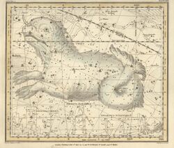 Cetus has been depicted in many ways throughout its history. In the 17th century, Cetus was depicted as a "dragon fish" by Johann Bayer. Both Willem Blaeu and Andreas Cellarius depicted Cetus as a whale-like creature in the same century. However, Cetus has also been variously depicted with animal heads attached to a piscine body.[9]