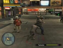 During development, the team researched hostess clubs, which are prominently featured in the story, even attending hostess clubs themselves, including Roppongi and Kabukicho.[22] The fictional setting of Kamurocho in the game was closely based on the red-light district of Kabukicho in Tokyo.[23] The development team wanted to accurately portray yakuza, especially such as their obsession with jingi, their code of honor. Originally the game had scenes where pinky fingers were cut off, a traditional punishment, but these scenes were removed so that CERO would give Yakuza a favorable rating. Though using the gameplay schematics of one of Nagoshi's earlier titles, SpikeOut, as basis for the combat, Yakuza utilized an entirely new engine crafted for the game.[24] Some of the software used to help develop the game were Autodesk Softimage.[25]