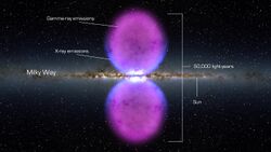 In November 2010, using the Fermi Gamma-ray Space Telescope, two gigantic gamma-ray bubbles, spanning about 25,000 light-years across, were detected at the heart of the Milky Way. These bubbles of high-energy radiation are suspected as erupting from a massive black hole or evidence of a burst of star formations from millions of years ago. They were discovered after scientists filtered out the "fog of background gamma-rays suffusing the sky". This discovery confirmed previous clues that a large unknown "structure" was in the center of the Milky Way.[16]