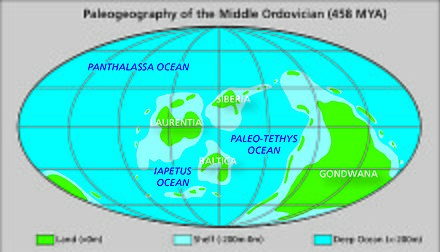 During the Ordovician, Baltica moved northward, approaching Laurentia, which again allowed trilobites and brachiopods to cross the Iapetus Ocean. In the Silurian, c. 425 Ma, the final collision between Scotland-Greenland and Norway resulted in the closure of the Iapetus and the Scandian Orogeny.[4]
