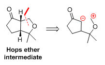 Many retrosynthetic disconnections important for organic synthesis planning use carbocationic synthons. Carbon-carbon bonds, for example, exist ubiquitously in organic molecules, and are usually disconnected during a retrosynthetic analysis to yield carbocationic and carbanionic synthons. Carbon-heteroatom bonds, such as those found in alkyl halides, alcohols, and amides, can also be traced backwards retrosynthetically to polar C-X bond disconnections yielding a carbocation on carbon. oxonium and acylium ions are carbocationic synthons for carbonyl compounds such as ketones, aldehydes and carboxylic acid derivatives. An oxonium-type synthon was used in a disconnection en route[clarification needed] to the hops ether[clarification needed],[6] a key component of beer (see fig.1). In the forward direction, the researchers used an intramolecular aldol reaction catalyzed by titanium tetrachloride to form the tetrahydrofuran ring of hops ether.