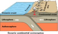 Low angle subduction or flat-slab subduction has been common during the Andean orogeny leading to crustal shortening and deformation and the suppression of arc volcanism. Flat-slab subduction has occurred at different times in various part of the Andes, with northern Colombia (6–10° N), Ecuador (0–2° S), northern Peru (3–13° S) and north-central Chile (24–30° S) experiencing these conditions at present.[1]