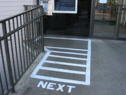 In an attempt to prevent criminals from shoulder surfing the customer's personal identification number (PIN), some banks draw privacy areas on the floor.
