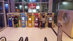 ATMs can be placed at any location but are most often placed near or inside banks, shopping centers, airport, railway stations, metro stations, grocery stores, gas stations, restaurants, and other locations. ATMs are also found on cruise ships and on some US Navy ships, where sailors can draw out their pay.[59]