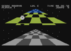 Trailblazer is a racing game which players play as a soccer ball along a series of suspended passages. The game can be played either in time trial or arcade mode and four track. The races usually last between 15 and 45 seconds. Special fields on the track let the ball jump (blue), slow down (red), speed up (green) or warp speed the ball (white), invert the controls (cyan/light blue), bounce it backwards (purple) or are holes (black).