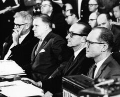 During Mondale's 1967 questioning about what was to become known as the "Phillips Report", Seamans was afraid Mondale might actually have seen a hard copy of Phillips' presentation, and responded that contractors have occasionally been subjected to on-site progress reviews; perhaps this was what Mondale's information referred to.[41] Mondale continued to refer to "the Report" despite Phillips' refusal to characterize it as such, and, angered by what he perceived as Webb's deception and concealment of important program problems from Congress, he questioned NASA's selection of North American as prime contractor. Seamans later wrote that Webb roundly chastised him in the cab ride leaving the hearing, for volunteering information which led to the disclosure of Phillips' memo.[41]