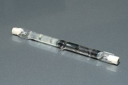 Tubular lamps with electrical contacts at each end are now being used in standalone lamps and household fixtures. These come in various lengths and power ratings (50–300 W). More powerful lamps are used as portable work lights, with bulbs rated 250 or 500 watts.