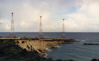 The Delimara Transmitter was a relay station of Deutsche Welle near Cyclops on Malta. It was used as short- and medium wave transmission site. For the medium wave transmissions, which took place on 1557 kHz with a transmission power of 600 kW, it had two guyed masts, insulated against ground, which were guyed with polymeric guyes. The short wave antennas were mounted on free-standing lattice towers. Direction was achieved by different slewing of the various antennae available.