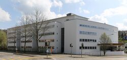 One of the buildings of the Federal Office for the Environment (Worblentalstrasse 68, Ittigen, 2014) |