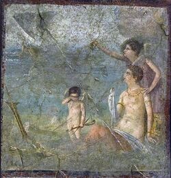 In Nonnus' epic Dionysiaca, Aura, one of Artemis' virgin attendants, questioned her mistress' virginity due to the feminine and curvaceous shape of her body; Aura claimed that no goddess or woman with that sort of figure would be a virgin, and asserted her own superiority over the goddess thanks to her own lean and boyish silhouette. Artemis, enraged, went to Nemesis and asked for revenge. Nemesis promised to the goddess that Aura would have her punishment, and that the punishment would be to lose the virginity she took such pride in. Nemesis then contacted Eros, the god of love, and he struck Dionysus with one of his arrows. Dionysus fell madly in love with Aura, and when she rebuffed his advances, he got her drunk, tied her up and raped her as she lay unconscious, bringing Nemesis' plan to a success.[16]