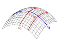 The two curves [math]\displaystyle{ c_1,c_2 }[/math] can be used to generate the so called corresponding midchord surface. Its parametric representation is