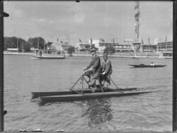 The earliest record of a pedalo is perhaps Leonardo da Vinci's diagram of a craft driven by two pedals.[1][2]