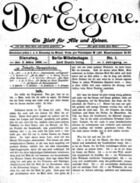 Der Einzige was a German individualist anarchist magazine. It appeared in 1919 as a weekly, then sporadically until 1925 and was edited by cousins Anselm Ruest (pseudonym for Ernst Samuel) and Mynona (pseudonym for Salomo Friedlaender). Its title was adopted from the book Der Einzige und sein Eigentum (The Ego and Its Own) by Max Stirner. Another influence was the thought of German philosopher Friedrich Nietzsche.[212] The publication was connected to the local expressionist artistic current and the transition from it towards Dada.[213]